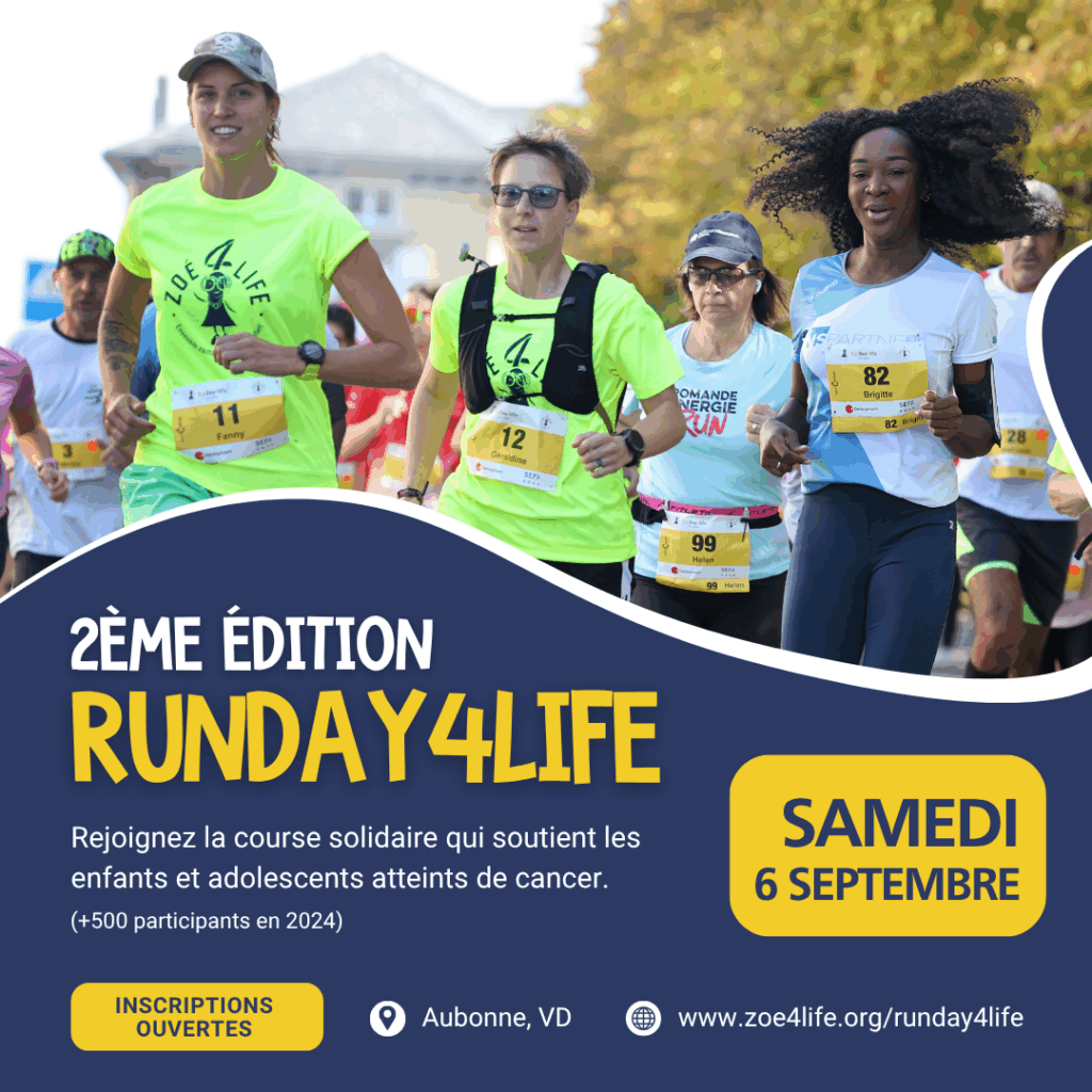 RUNDAY4LIFE – Aubonne La course pour tous, au profit des enfants atteints de cancer Courir pour une cause qui a du sens RunDay4life, c’est la journée sportive et solidaire de l’association Zoé4life, au profit des enfants atteints de cancer.Ouverte à tous — coureurs débutants ou confirmés, marcheurs, familles, amis ou collègues — cette journée est […]